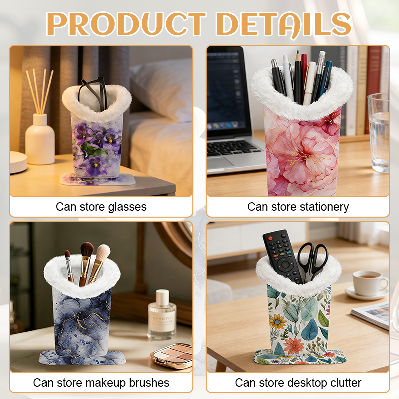 Tänk utanför ramarna. Denna mjuka kopp är perfekt för glasögon, men är också en mångsidig förvaringslösning. Använd den för att förvara dina exklusiva sminkborstar, fjärrkontroller eller viktiga pennor inom räckhåll. Det är en elegant lösning för att rensa bort röran på skrivbordet.