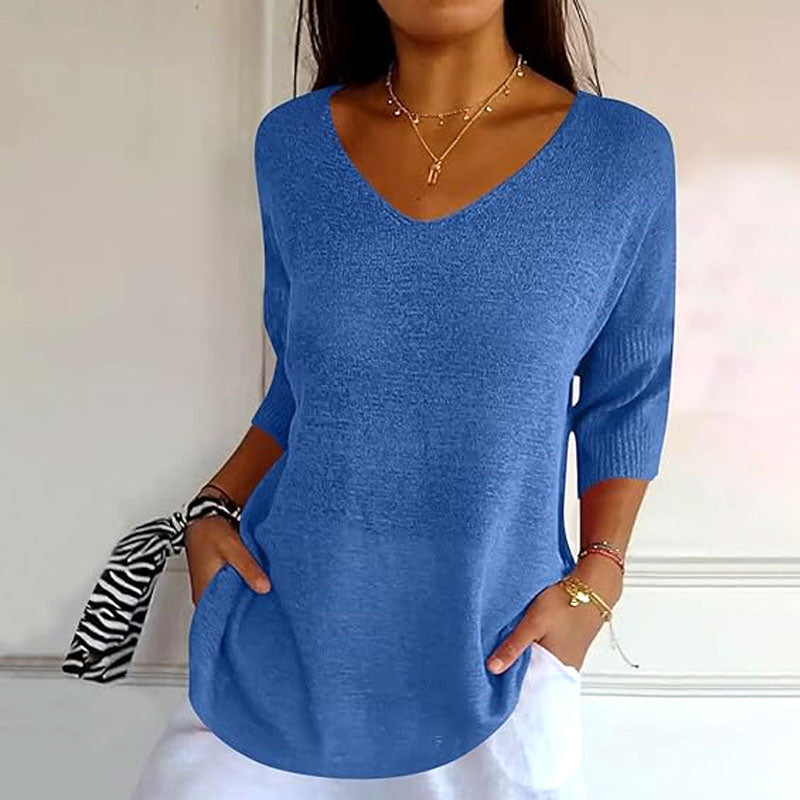 - 1 x Einfarbiges Stricktop mit V-Ausschnitt