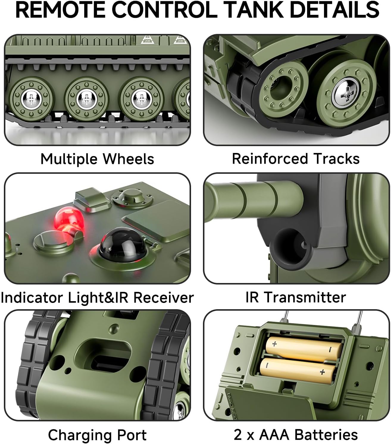 - 【Infrarot-Kampfmodus】 Der ferngesteuerte Panzer ist mit einem Infrarot-Sender-/Empfängersystem ausgestattet. Richten Sie im Kampf den Sender auf den gegnerischen Empfänger und drücken Sie die Kampftaste, um einen Angriff auszulösen. Bei einem Treffer aktiviert der Panzer sein Verteidigungsprogramm: Der Turm schwenkt automatisch nach links und rechts, die Kontrollleuchten blinken und ein simulierter Alarm ertönt. Die Infrarotstrahlen verwenden eine ungefährliche Wellenlänge und sind daher auch für Kinder sicher zu verwenden.