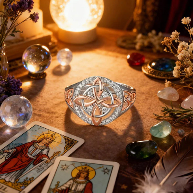 Elegant tvåfärgad ring med keltisk knut och zirkon